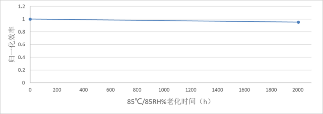 为了进一步验证产品稳定性,企业还会展开更严格的“强化版IEC61215测试”,即对IEC61215中的关键测试项DH1000、TC200进行加严测试,延长两个测试序列的测试时间和周期,这是晶硅光伏行业中产品性能测试的常用手段。极电光能对所产出的钙钛矿组件进行了DH2000、TC400测试(即比IEC61215标准加严一倍)。