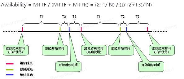 MTTR (Mean Time To Repair,平均修复时间),指系统从发生故障到维修结束之间的时间段的平均值,即: