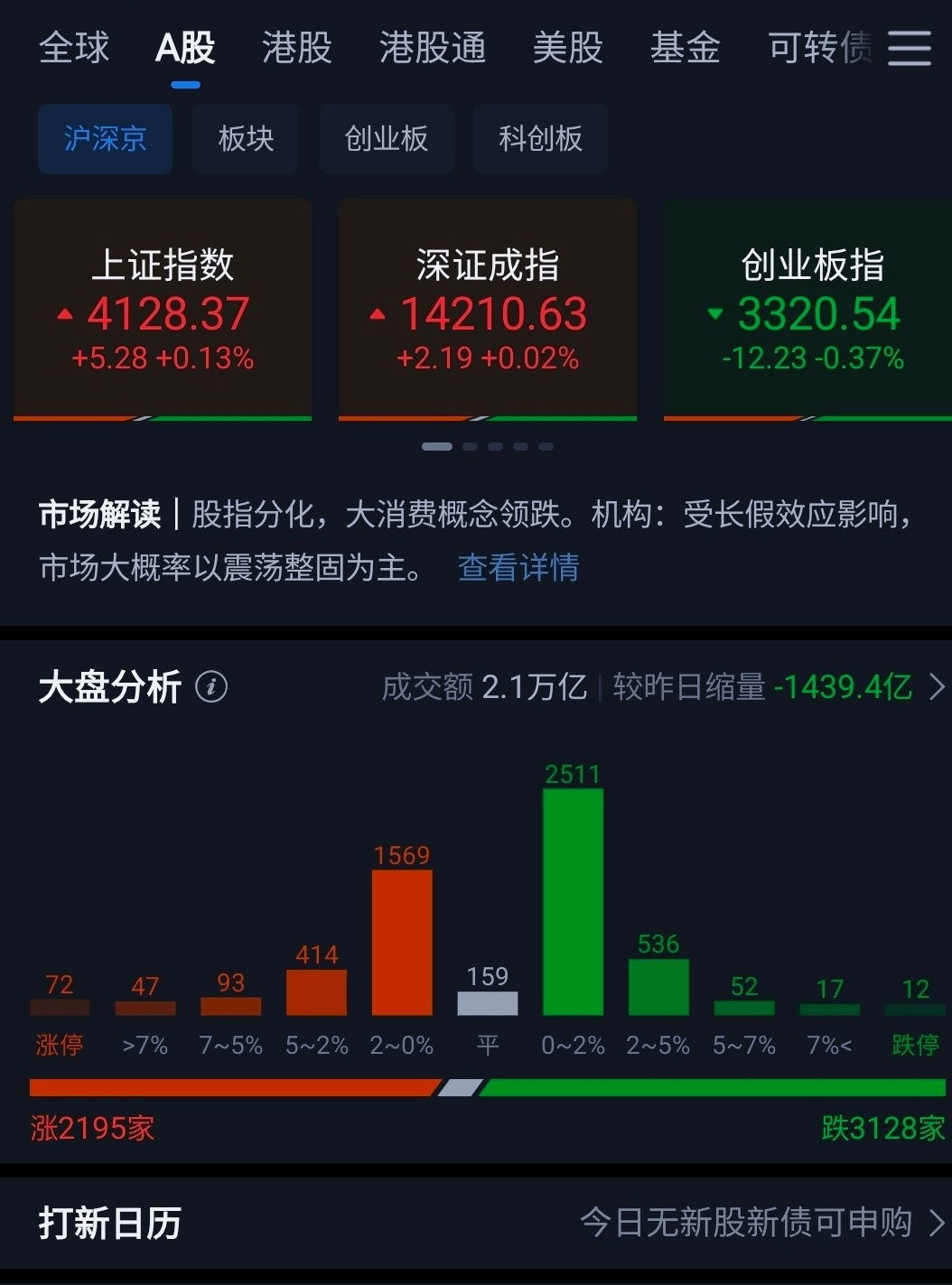 YYVIP易游·(中国有限公司)官方网站-2月10日,市场全天窄幅震荡,三大指数涨跌不一,科创50指数涨近1%。收盘时,沪指涨0.13%报4128.37点,深成指涨0.02%报14210.63点,创业板指跌0.37%报3320.54点。沪深两市成交额2.11万亿,较上一个交易日缩量1439亿。