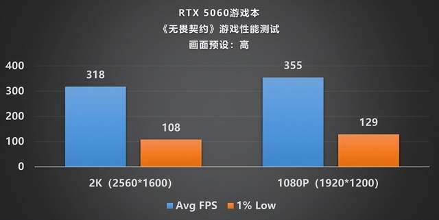 《CS 2》与《无畏契约》一直以来都是国内话题度超高的电子竞技游戏,不出所料,这台GeForce RTX 5060游戏本在两个游戏中的表现也相当出色,无论是在2K超高分辨率还是普通的1080P分辨率下,游戏的帧率表现都依旧稳扎稳打,《CS 2》在2K下跑得接近200的平均帧率,在1080P画质下更是跑出284帧的出色表现;《无畏契约》无论是2K还是1080P均已达到300以上,可以说完美符合电竞级的帧率标准。