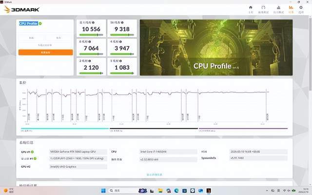 而在更注重处理器性能的CPU Profile测试里,我们测试的这款GeForce RTX 5060游戏本也凭借着优秀的供电配置,让这块i7-14650HX的性能得以完美释放。16线程与最大线程也还拥有不错的超频潜力,为整台笔记本留下了富余的超频空间,更适合那些硬核游戏玩家以及硬件发烧友去折腾。