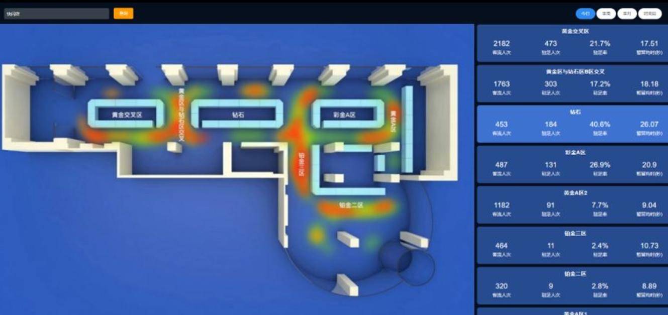 在硬件层面,ABD慧眼数据提供商场客流统计设备与实体店客流轨迹分析工具的定制化部署方案。例如,其双目摄像头设备可覆盖8米宽通道,支持30人/秒的并发识别;而3D激光雷达设备则适用于高客流场景,单设备日均处理数据量超10万条。在软件层面,慧眼i-report客流分析云平台提供多维度报表功能,包括客流热力图、时段分布图、停留时长分布等,并支持与POS系统、会员系统对接,实现“客流-销售-会员”数据闭环分析。